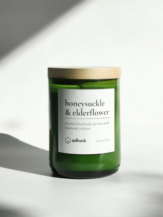 Honeysuckle & Elderflower Wine Bottle Candle: Honeysuckle & Elderflower / Green
