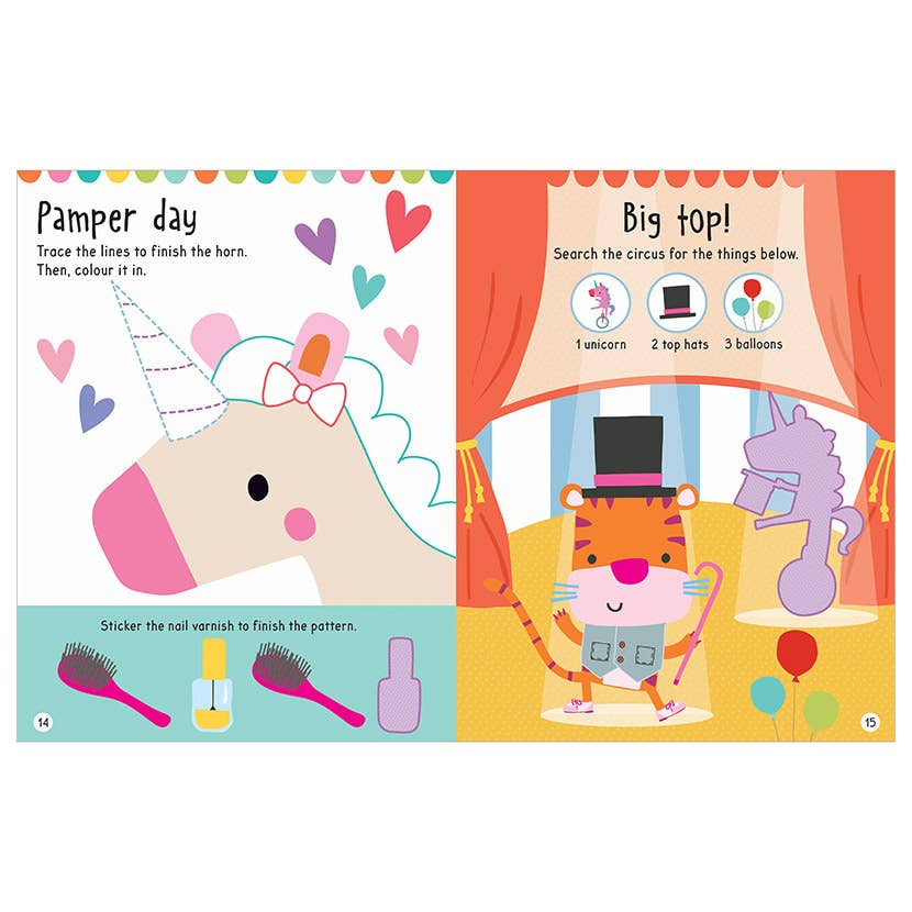 Learn about adorable unicorns with Big Stickers for Little Hands Magical Unicorns. This early learning sticker activity book introduces children aged 3+ to cute creatures such as monkeys, giraffes and penguins through simple activities, big stickers and card press-outs. This 16-page sticker book for kids is full of fun, early learning activities that are perfect for young animal lovers.