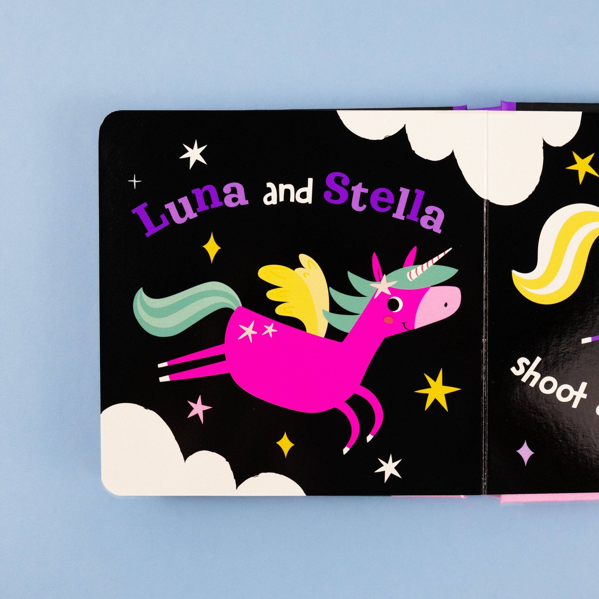 This playful board book is specially designed to delight babies and toddlers with bold, high-contrast colours and adorable magical characters. Each page has vibrant neon artwork that engages developing eyes and curious minds.